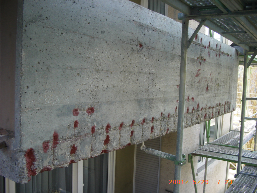 Die Sanierung von Betonbauteilen wie Balkone, Fassadenelemente und nicht zuletzt auch Stützen und Decken von Tiefgaragen gewinnt infolge zunehmender schädlicher Umwelteinflüsse stärker an Bedeutung. Ziel hierbei ist der dauerhafte Schutz des Betons, der Bewehrung und des Werterhalts des gesamten Bauwerks. Neben anspruchsvollen technischen Entscheidungen bei der Sanierungsplanung und -ausführung stehen natürlich auch wirtschaftliche Aspekte im Vordergrund. | ||||||||||||||||||||||||||||||||||||||||||||||||||||||||||||||||||||||||||||||||||||||||||||||||||